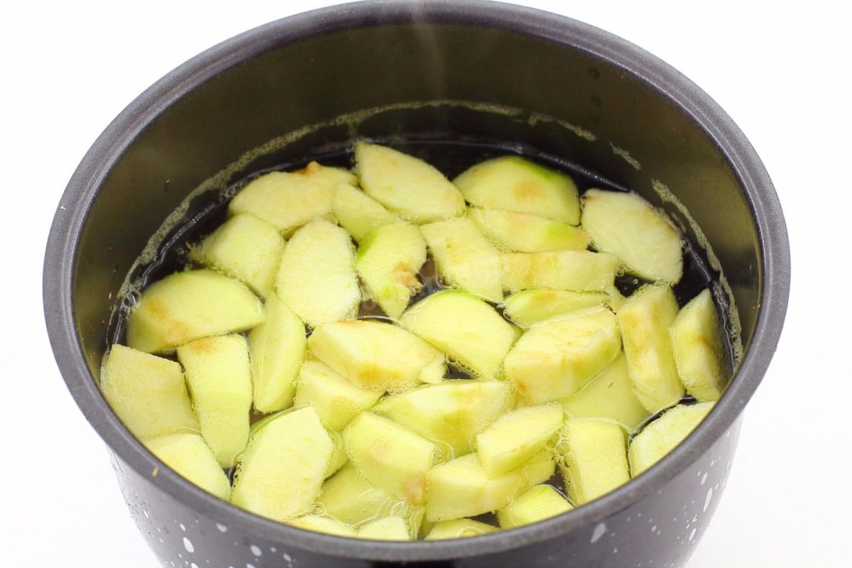 - Całe jabłko lub pokrojone na kawałki ugotować w rondlu z wodą.